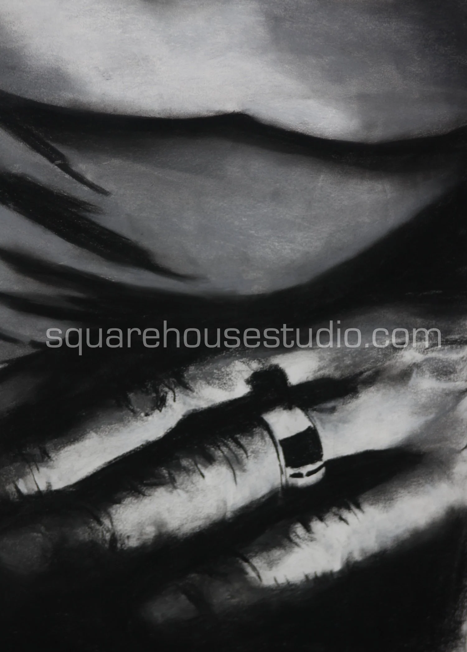 SUNDAY MORNING 1, in a series of original charcoals drawings, 22” x 32”