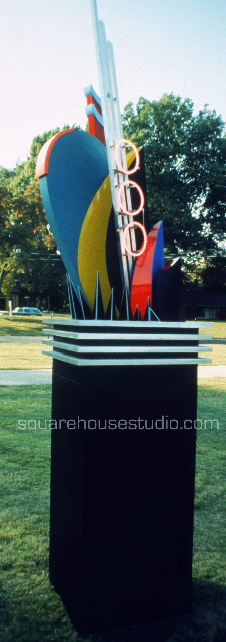 MEMPHIS MUSIC, 10’ x 2’ square aluminum, plexiglass and neon sculpture